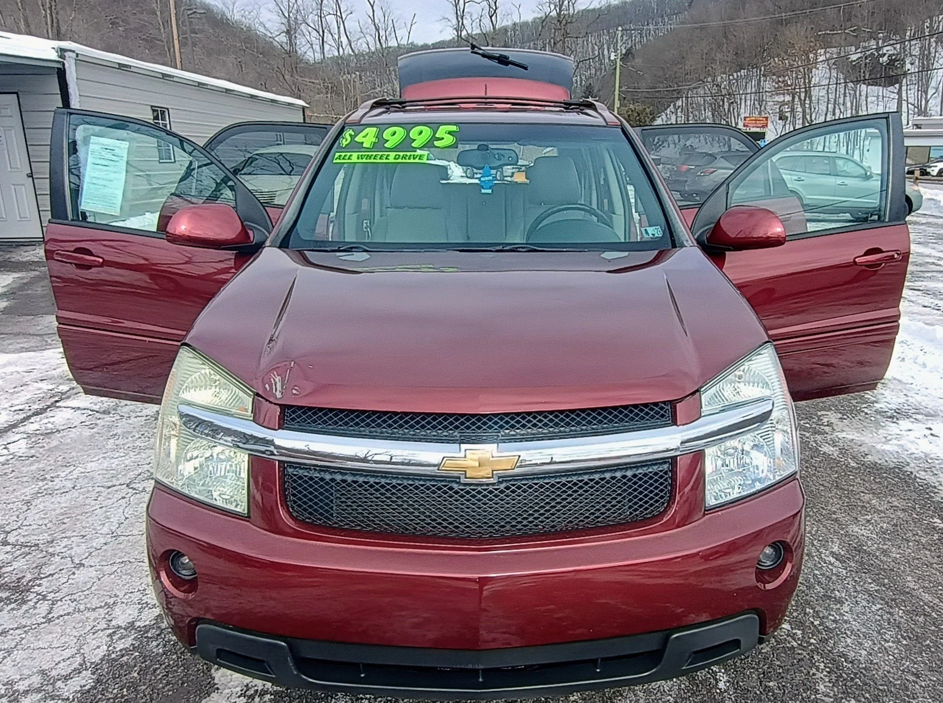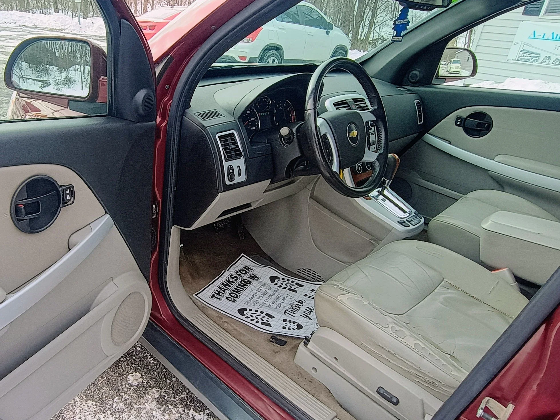 This Equinox presents very well for its age. The exterior paint looks good overall with only a small dent near the front tip of the hood. Interior is clean and comfortable; the driver’s seat bolster shows wear consistent with age.
